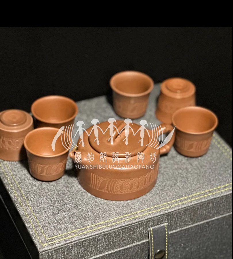 仰韶紅泥茶具雕刻舞蹈紋高端手工藝茶具